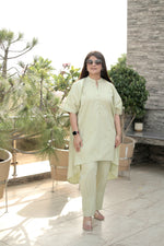 Embrace effortless elegance with AAVARNAM's breathable cotton kaftan shirt & pleated pants set. The flowy kaftan silhouette and crisp pleated pants create a perfect balance of comfort and style. Ideal for summer vacations, beach cover-ups, or elevated casual wear. Lightweight fabric ensures all-day comfort while the boho-chic design makes a statement.